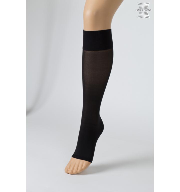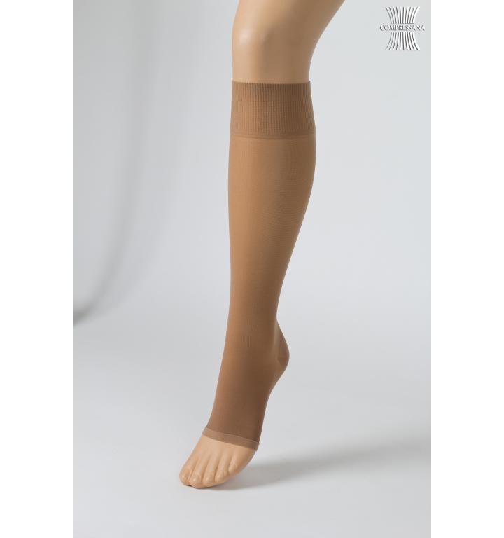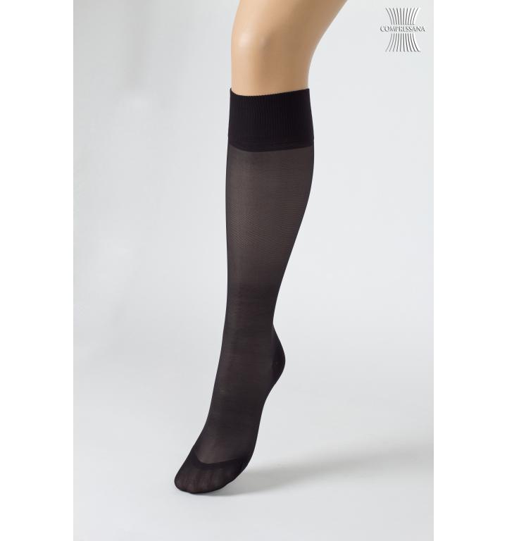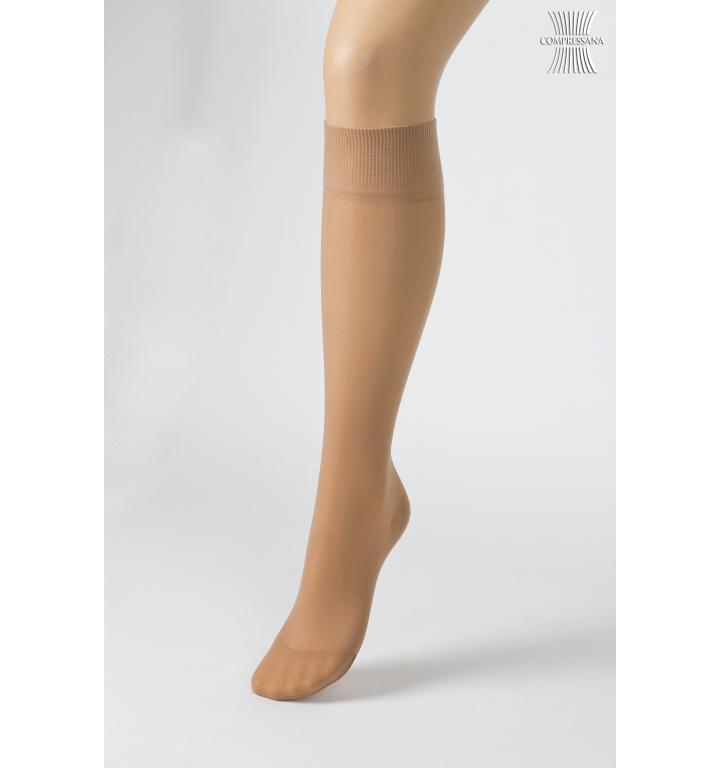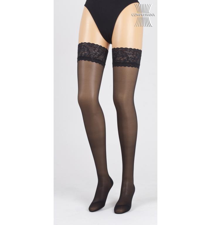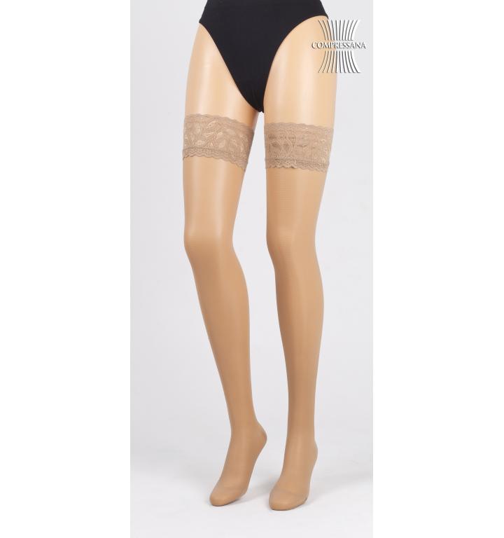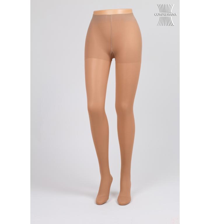 Nagyon elegáns és finom megjelenésű támasztó- és kompressziós harisnya. A kompressziós osztály, közepes, III-as támasztóosztály. Visszerek és lábdagadás kialakulásának megelőzésére, elnehezedett, fáradt és fájós lábak ellen. Az optimális szabásnak hála jól illeszkedik, félig áttetsző anyag, selymes fényű. Megfelel hölgyeknek.